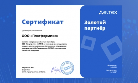 Юлия Максименко, руководитель отдела по работе с интеграторами Eltex: «Для нас важно, чтобы партнеры не ограничивались внедрением оборудования, а учитывали задачи заказчика и особенности его инфраструктуры. Присвоение Золотого статуса отражает накопленный опыт “Платформикс” в проектах с решениями Eltex и их системный подход к работе. Мы ценим этот опыт и рассчитываем на дальнейшее развитие сотрудничества».